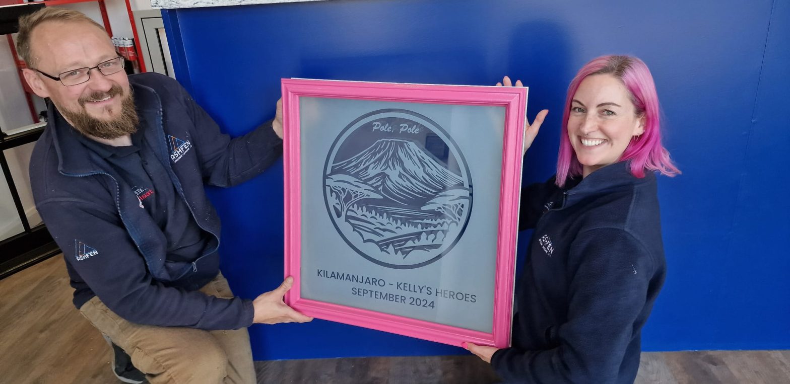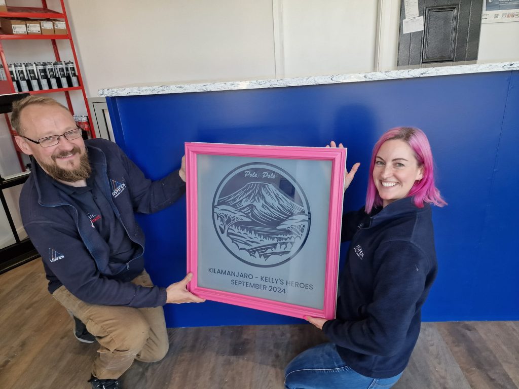 As the Kelly’s Heroes team prepares to take on the monumental task of climbing Mount Kilimanjaro, RegaLead has been showing its support for customers and partners involved in the challenge by presenting them with custom-made glass panels to commemorate the event.